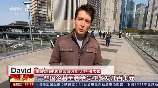 美国有线电视新闻网记者 大卫·卡尔弗:一些国企会给职员多发几百美元,鼓励他们不要返乡,利用春节假期,多多游览自己生活和工作的城市。