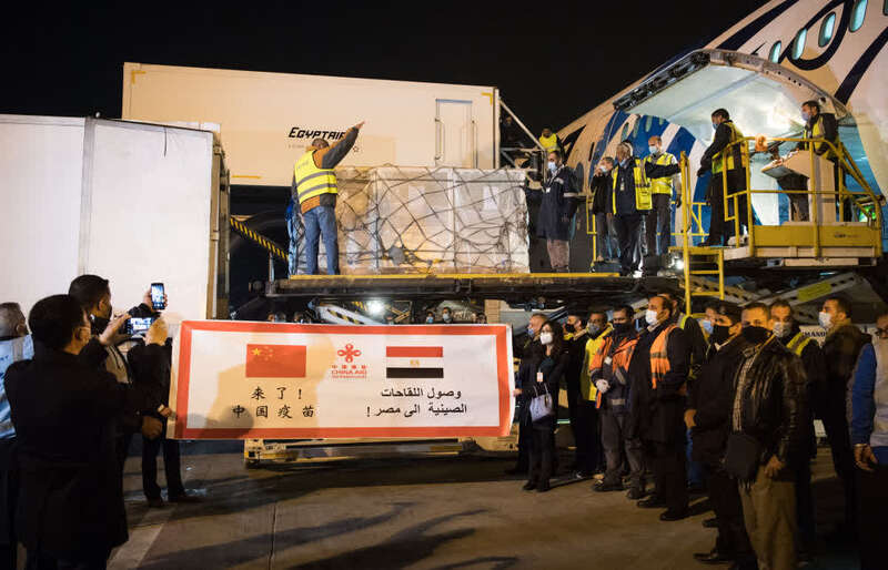 当地时间2月23日凌晨,中国援助埃及的首批新冠疫苗运抵开罗国际机场,援助阿拉伯国家联盟秘书处的新冠疫苗也同机抵达。