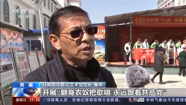 日喀则市群众艺术馆馆长 桑布:开展“翻身农奴把歌唱,永远跟着共产党”群众性文艺演出,主要目的是把西藏的新的生活、好政策、新的大成就,通过文艺表演方式来展示给广大人民群众。