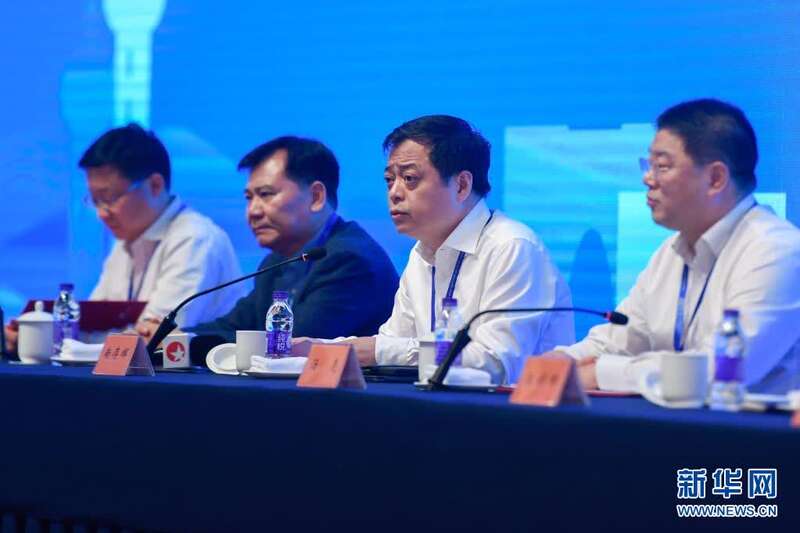 长三角企业家联盟轮值主席、正泰集团股份有限公司董事长南存辉(右二)在联盟成立大会上讲话(2020年6月5日摄)。新华社记者 黄宗治 摄