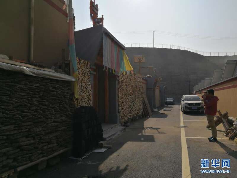 青海省黄南藏族自治州尖扎县尖扎滩乡来玉村扶贫第一书记李玉栋向记者介绍来玉村“脱贫后的喜悦”。照片墙集纳了村民们脱贫后的笑脸照片(2020年12月11日摄)。新华社记者 顾玲 摄