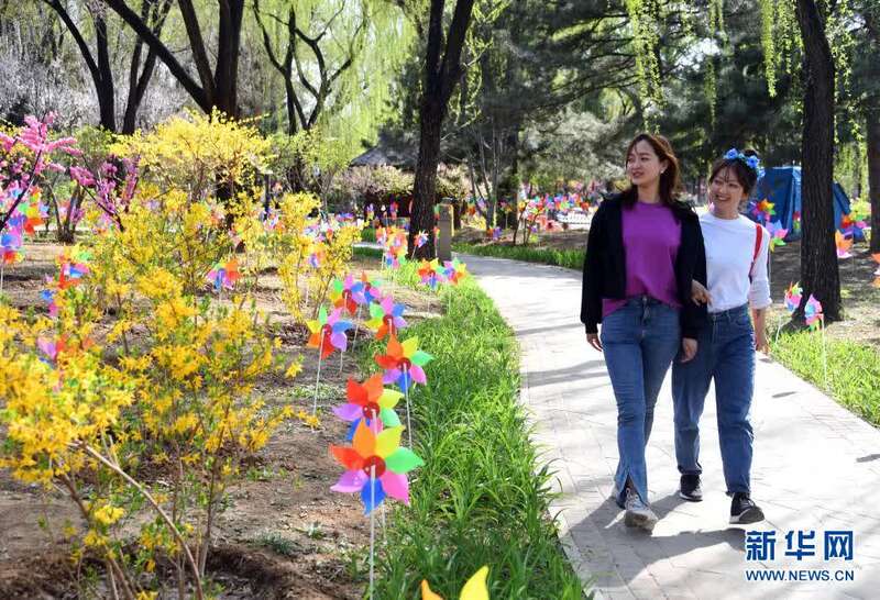 4月3日,清明小长假第一天,游客在北京南宫五洲植物乐园游览。2021年南宫首届踏青艺术文化季于4月3日至5月10日举行。新华社记者 任超 摄