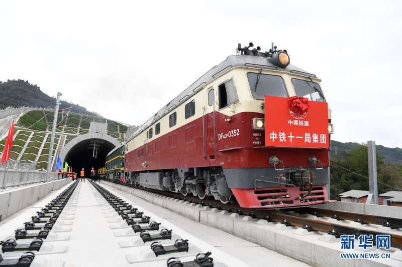 3月17日,在郑万高铁重庆段施工现场,铺轨牵引车进入作业现场。新华社记者 唐奕 摄