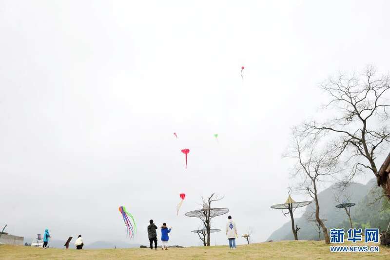4月5日,游客在重庆市酉阳土家族苗族自治县叠石花谷生态旅游景区放风筝。新华社发(邱洪斌 摄)