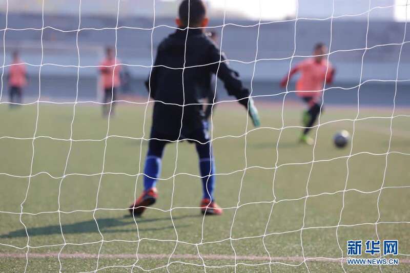 4月5日,在河北省唐山市海港经济开发区体育中心,孩子们在进行足球比赛。新华社发(李磊 摄)