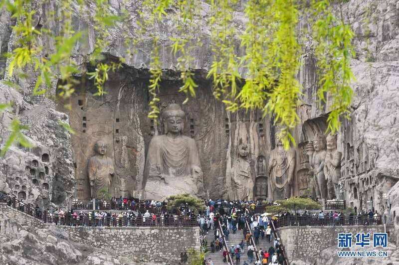 4月4日,游客在位于河南洛阳的龙门石窟景区内参观游览。新华社发(黄政伟 摄)