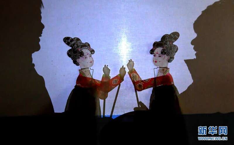 精灵梦皮影艺术团的演员在排练皮影戏(3月19日摄)。新华社记者 许雅楠 摄