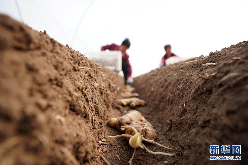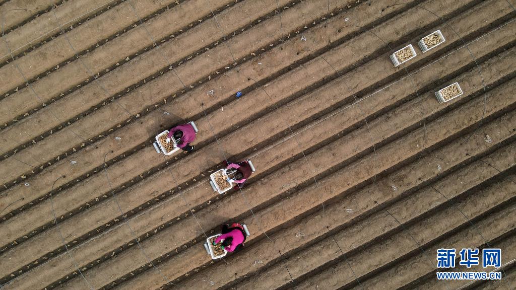 4月10日,河北邢台经济开发区沙河城镇北关村农民在摆放姜种。连日来,河北邢台经济开发区农民抢抓农时种植生姜,田间一派繁忙景象。新华社记者 牟宇 摄