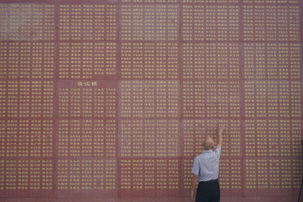 一名老红军后代在于都烈士纪念园英名墙上寻找亲人的名字(资料照片)。新华社记者 赖星 摄
