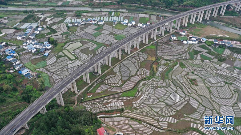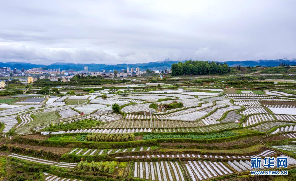 4月11日拍摄的贵州省遵义市余庆县白泥镇团结村现代农业蔬菜种植示范坝区(无人机照片)。