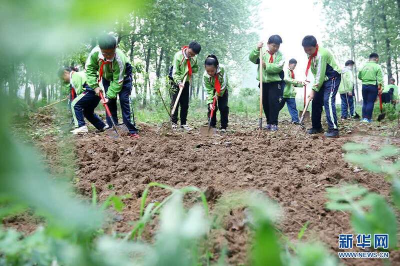 4月25日,淮北市第三实验小学的学生在体验整地。