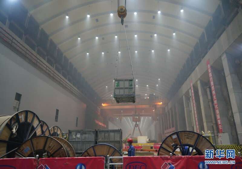 4月27日,工人在白鹤滩水电站机组安装区域作业。