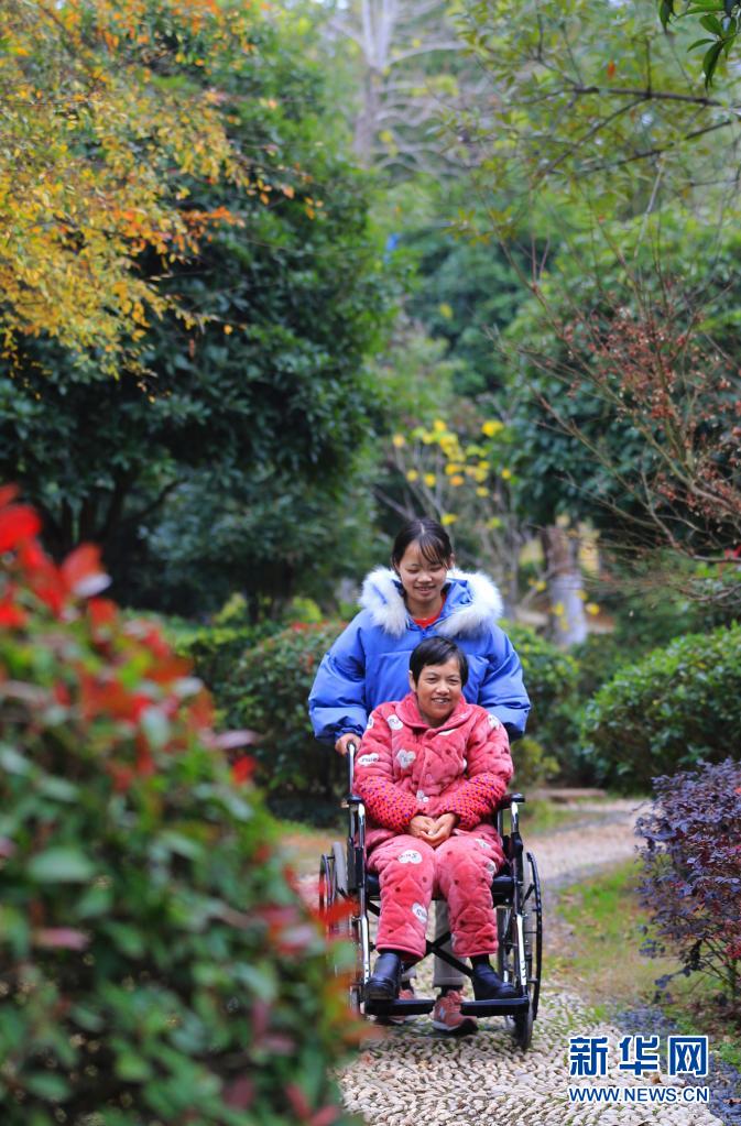 2020年1月2日,邹晴推着妈妈在外面散步。