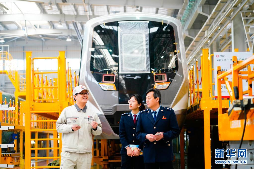河北石家庄市栾城区税务局工作人员在中车石家庄车辆有限公司调研(2020年1月16日摄)。新华社记者 邢广利 摄