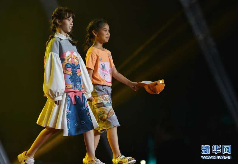 5月28日,在四川德阳广汉三星堆博物馆,小朋友在“古蜀丝梦”三星堆国潮大秀节目中走秀。
