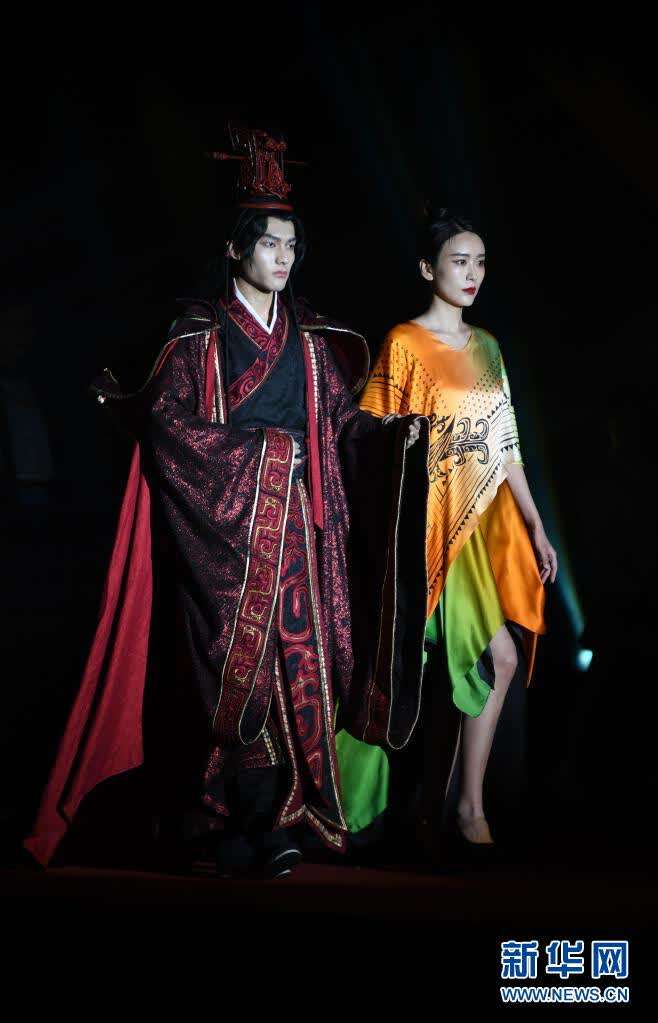 5月28日,在四川德阳广汉三星堆博物馆,演员在“古蜀丝梦”三星堆国潮大秀节目中走秀。