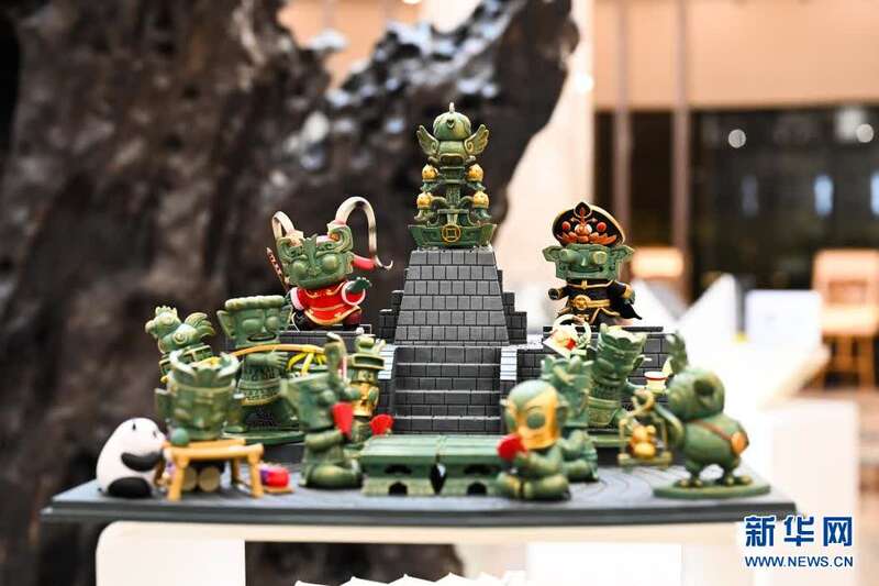 这是5月28日在四川德阳广汉三星堆博物馆拍摄的三星堆主题文创展上的文创产品。
