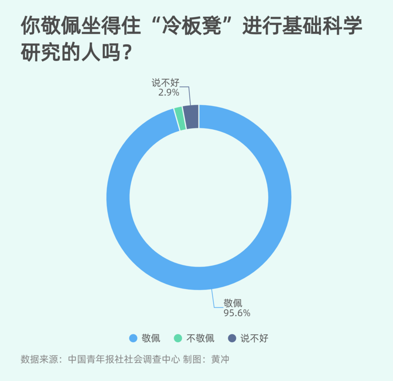 取得重大进展的同时,当前我国基础科学研究短板依然突出,面临很多“卡脖子”技术问题,也需要更多能坐得住“冷板凳”的人。本次调查中,95.6%的受访青少年表示,敬佩坐得住“冷板凳”进行基础科学研究的人。