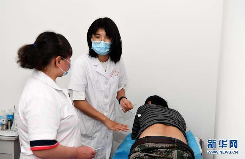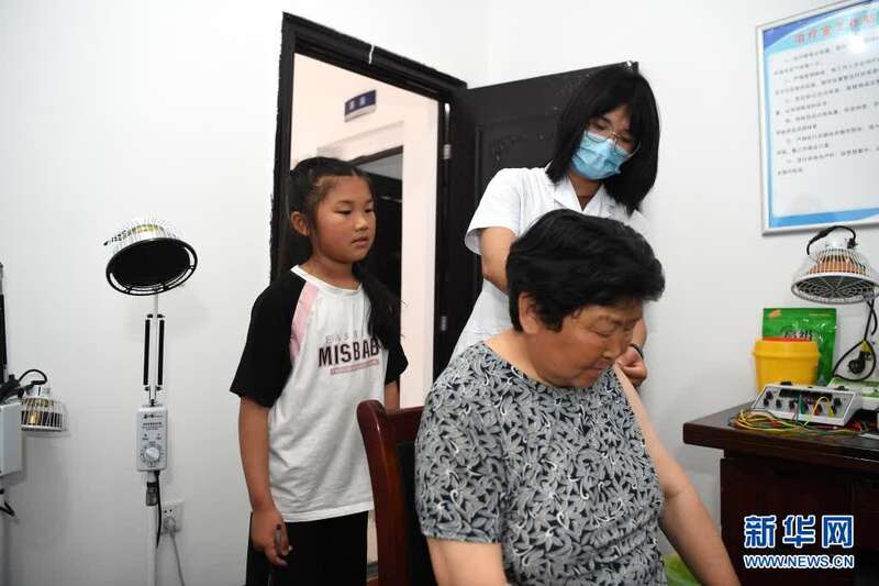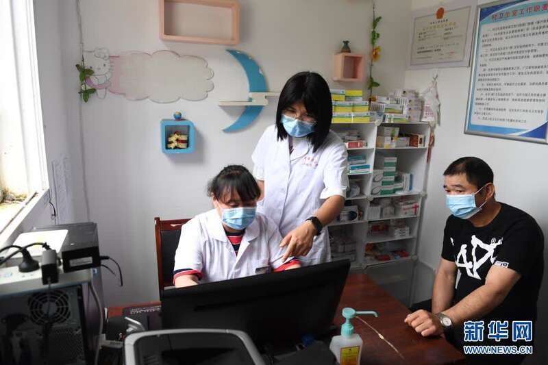 5月28日,徐晓婵(中)指导徒弟胡新莲在清溪村卫生室为村民诊治。胡新莲在徐晓婵离开后,将成为清溪村下一任村医。新华社记者刘军喜摄