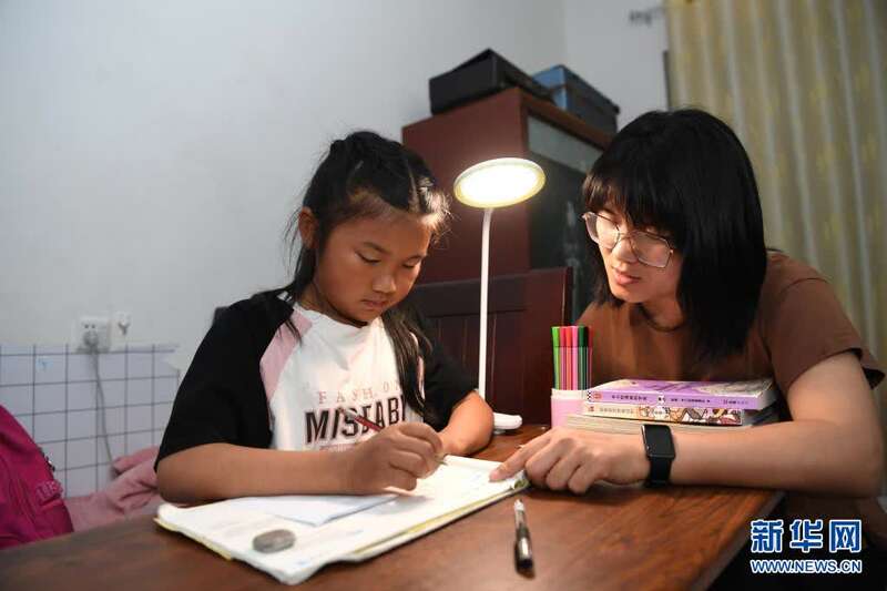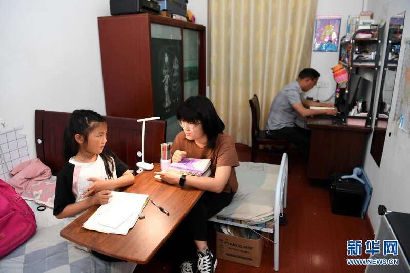 5月27日,张清语在妈妈徐晓婵的指导下学习。新华社记者刘军喜摄