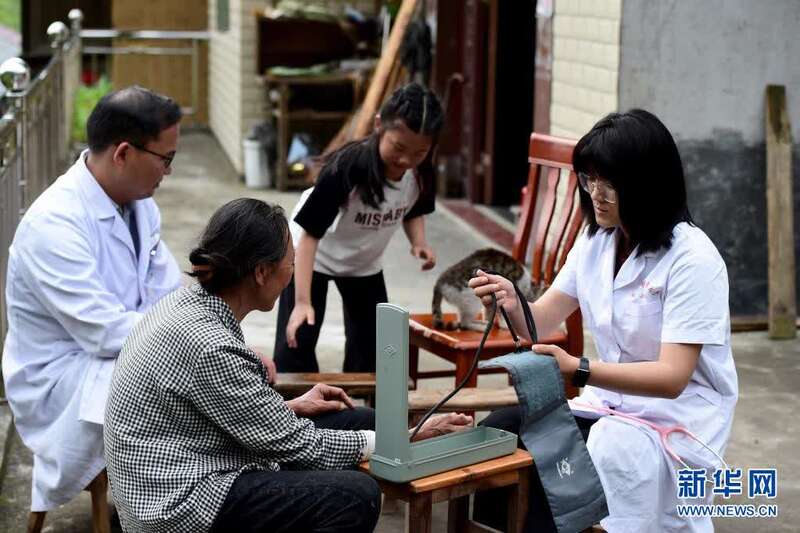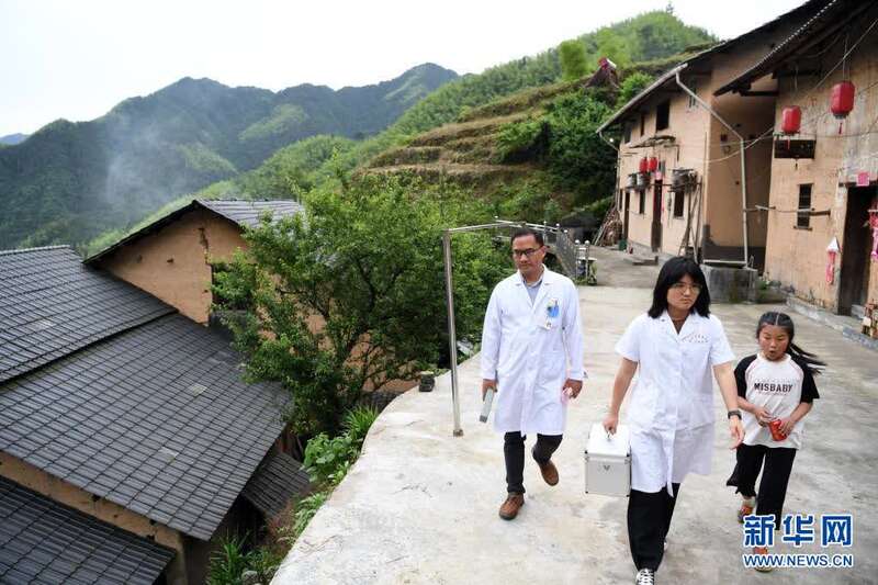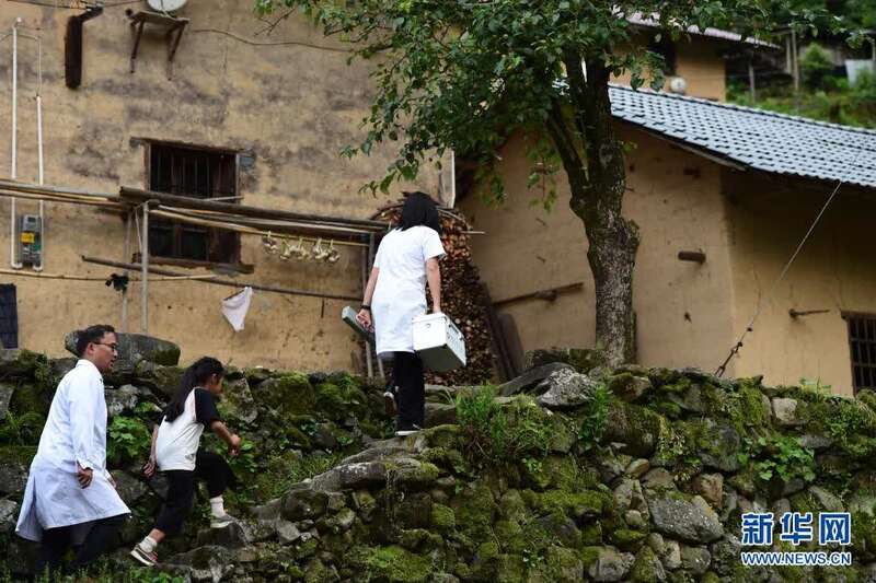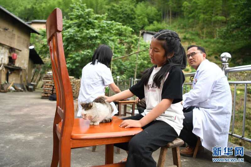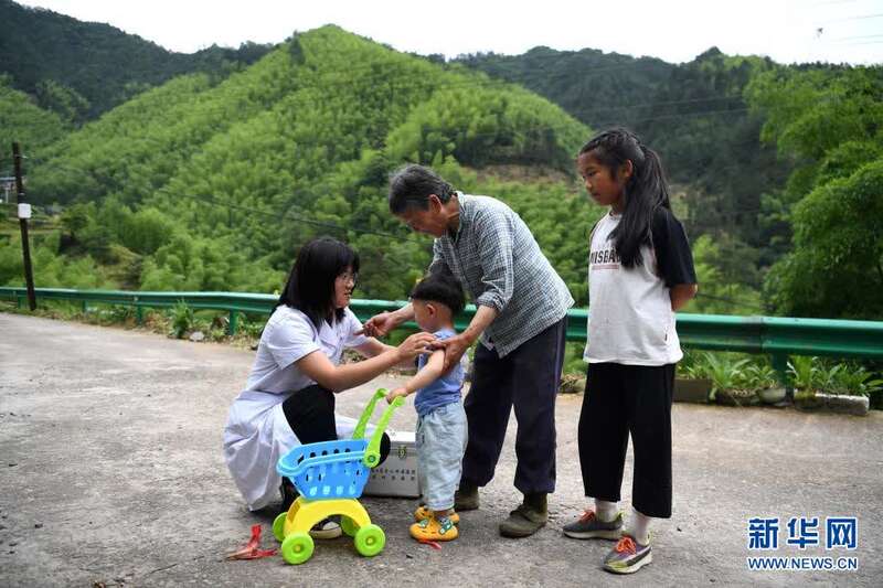 5月27日,张清语跟着妈妈来到清溪村开展医疗走访。新华社记者刘军喜摄