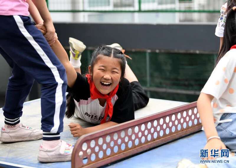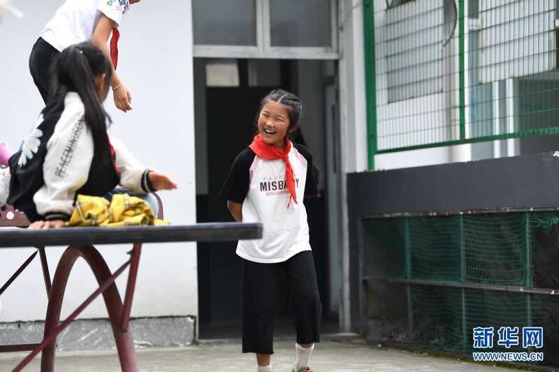 5月27日,张清语在璜尖中心小学和同学们玩耍。新华社记者杜宇摄