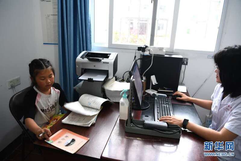 5月27日,张清语放学后来到妈妈徐晓婵所在的清溪村卫生室写作业。新华社记者刘军喜摄