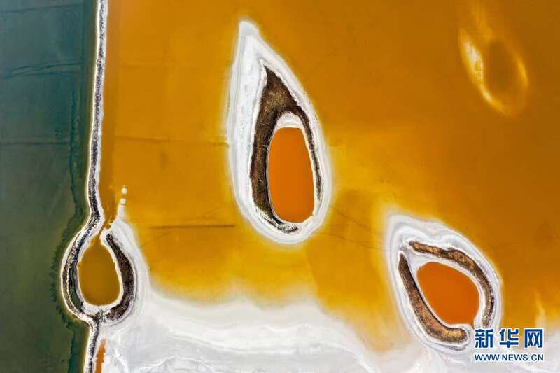 俯瞰山西运城盐湖一角(6月1日摄,无人机照片)。新华社记者 詹彦 摄