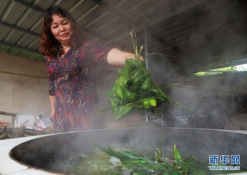 6月2日,贵州省铜仁市玉屏侗族自治县亚鱼乡郭家湾村村民在煮粽子。新华社发(胡攀学摄)