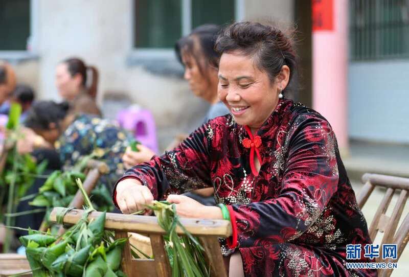 端午节将至,贵州省铜仁市玉屏侗族自治县亚鱼乡郭家湾村举行“我们的节日,端午”群众文化活动,村民们聚在一起比赛包粽子,喜迎端午节。