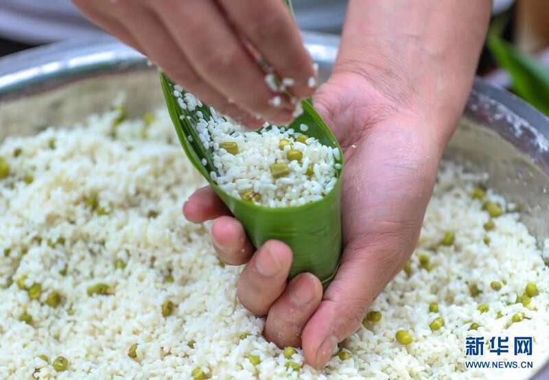 6月2日,贵州省铜仁市玉屏侗族自治县亚鱼乡郭家湾村村民参加包粽子比赛。新华社发(李昆摄)
