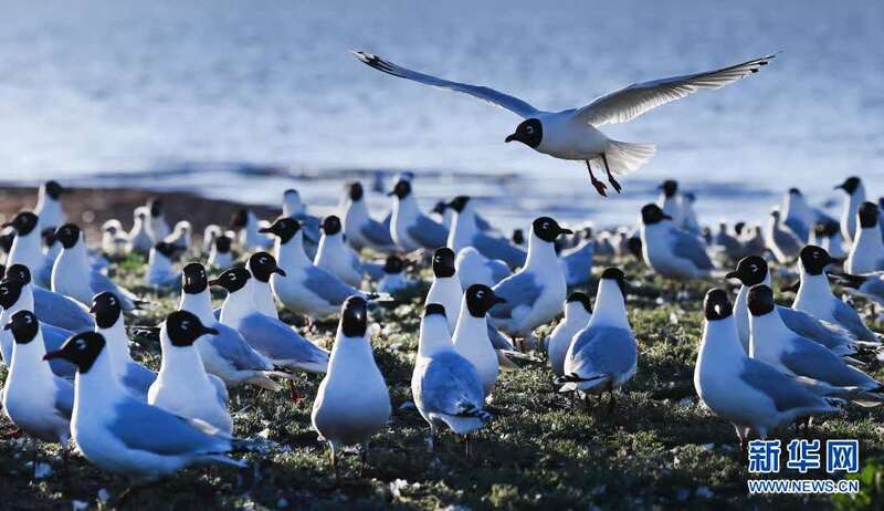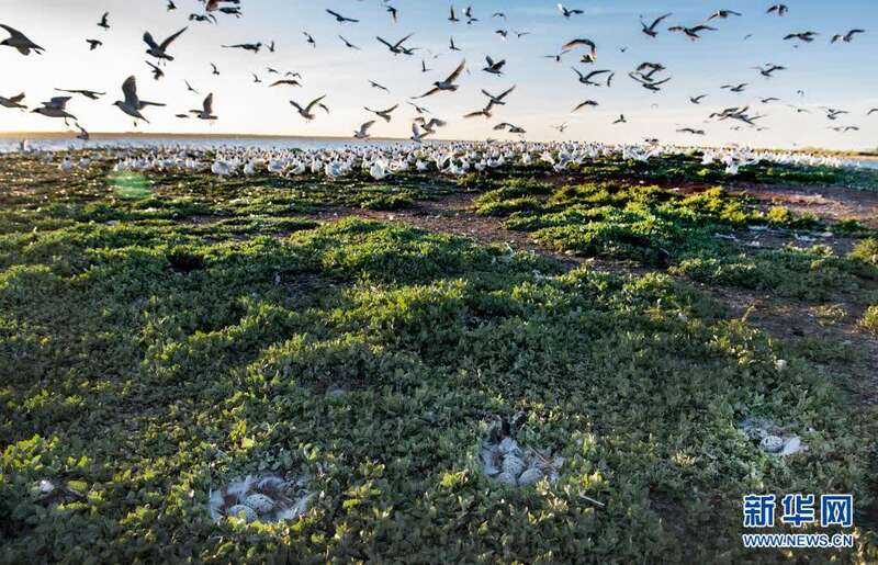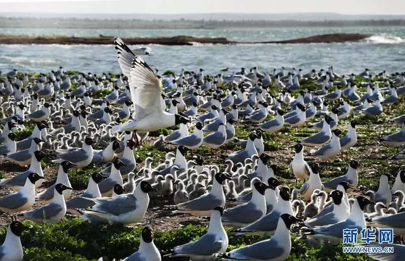 近期,随着气温升高,陕西省神木市红碱淖湿地保护区成了遗鸥的乐园,遗鸥在这里觅食嬉戏、孵化后代。