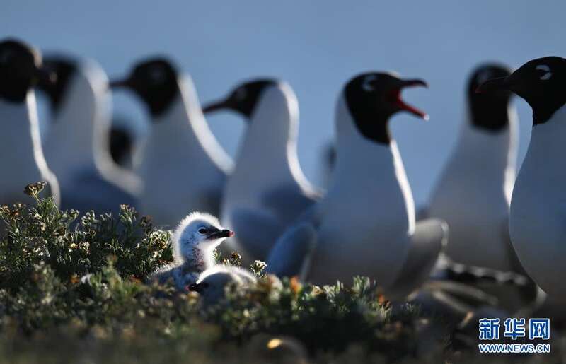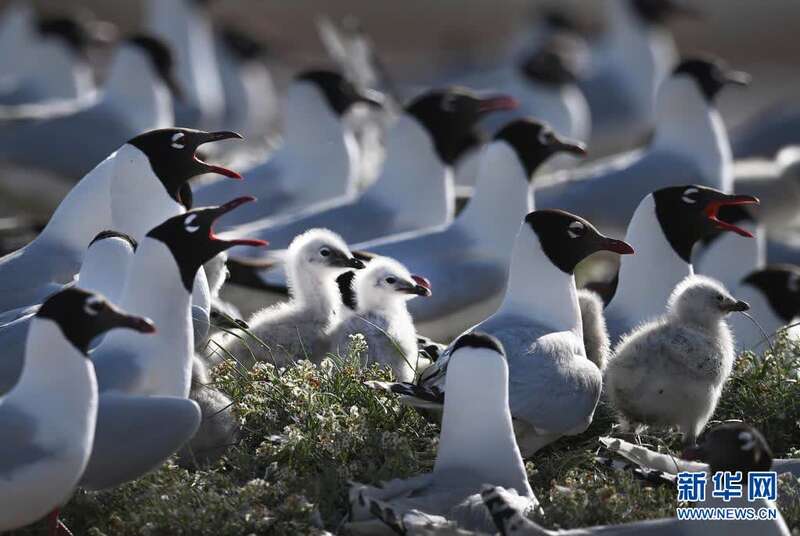 遗鸥在红碱淖的鸟岛上繁殖的小遗鸥(6月3日摄)。新华社记者 陶明 摄