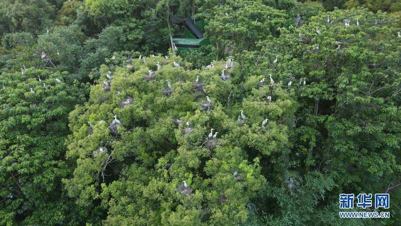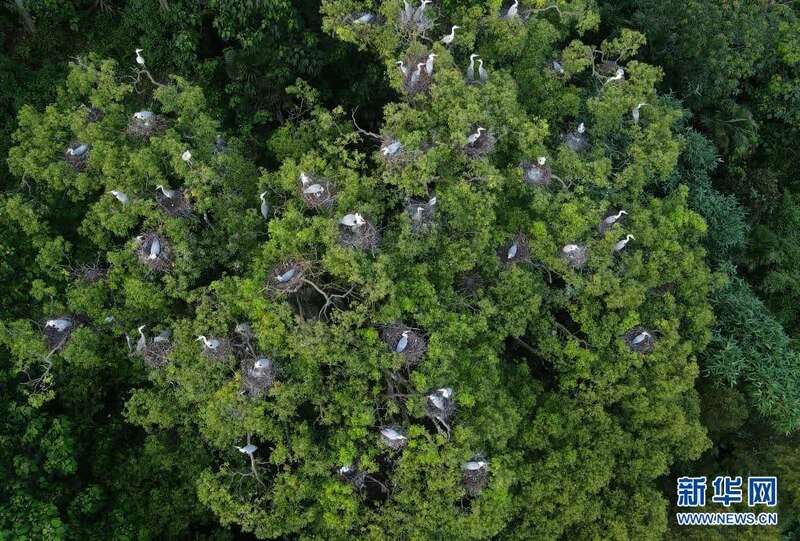 这是罗源县碧里乡濂澳村后山茂密的树林,成群的苍鹭在树上筑巢栖息(6月3日摄,无人机照片)。新华社记者 魏培全 摄