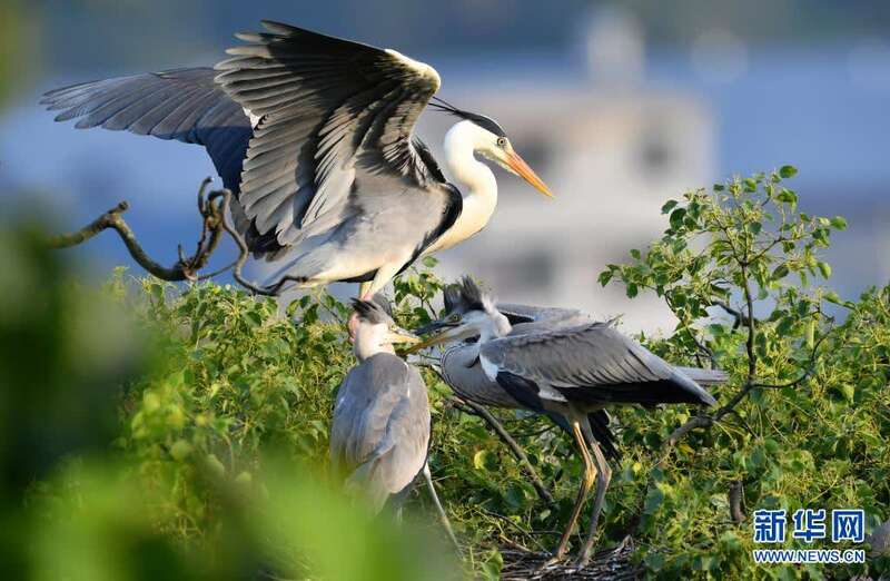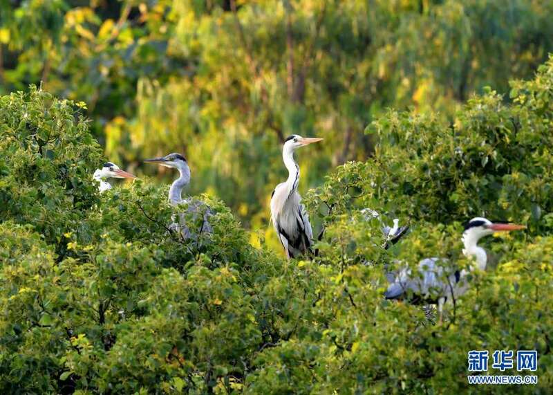 成群的苍鹭在树上筑巢栖息(6月3日摄)。新华社记者 魏培全 摄