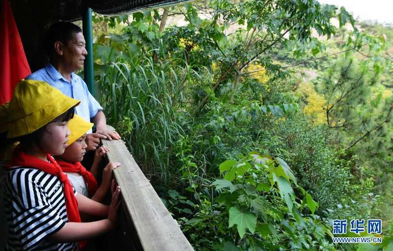 罗源县濂澳小学的爱鸟小分队在老师的带领下,来到观鸟点观赏苍鹭(6月3日摄)。新华社记者 魏培全 摄