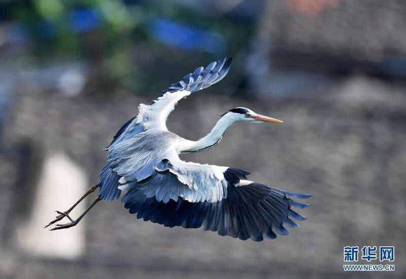 一只苍鹭在濂澳村上空展翅飞翔(6月3日摄)。新华社记者 魏培全 摄