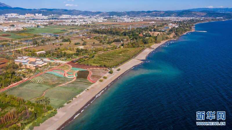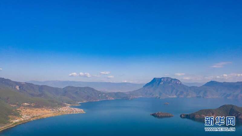 这是云南玉溪抚仙湖一景(2020年12月14日摄,无人机照片)。新华社记者 胡超 摄