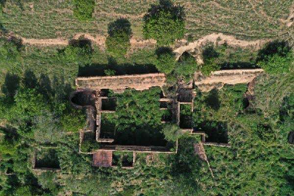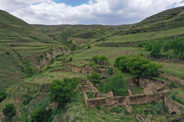 宁夏固原市西吉县沙沟乡阳庄村上圈组,昔日村民生活的遗迹已被绿色覆盖(2020年6月2日摄)。