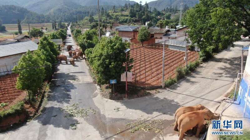 6月4日在昆明市晋宁区双河彝族乡拍摄的野象(无人机照片)。新华社发