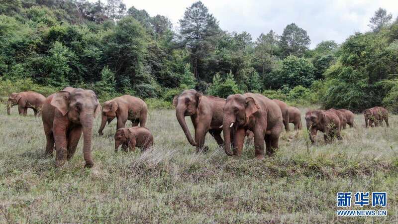 6月3日在昆明市晋宁区双河彝族乡拍摄的野象(无人机照片)。新华社发