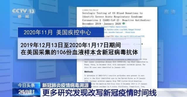 去年11月,美国疾控中心研究人员在《临床传染病》半月刊上报告说,他们检测了美国红十字会于2019年12月13日至2020年1月17日期间采集的7389份血液样本,结果发现,106份血液样本中含有新冠病毒抗体。