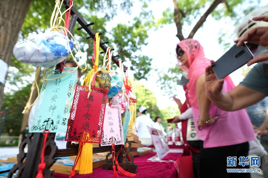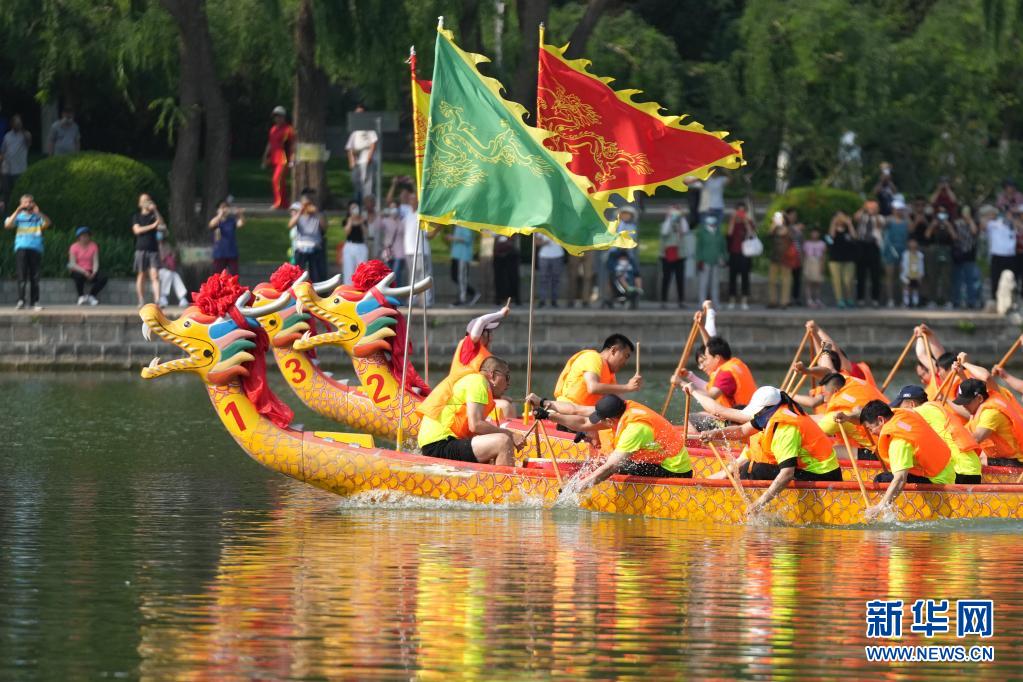 当日,“和满京城 奋进九州”2021龙潭端午文化节在北京龙潭公园举办,通过龙舟比赛、文艺演出、民俗体验、非遗展示等多种形式,再现多彩端午民俗,吸引市民游客前来参观游玩。