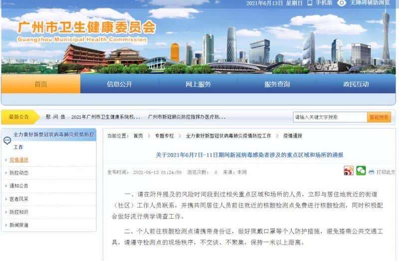 《关于2021年6月7日-11日期间新冠病毒感染者涉及的重点区域和场所的通报》: