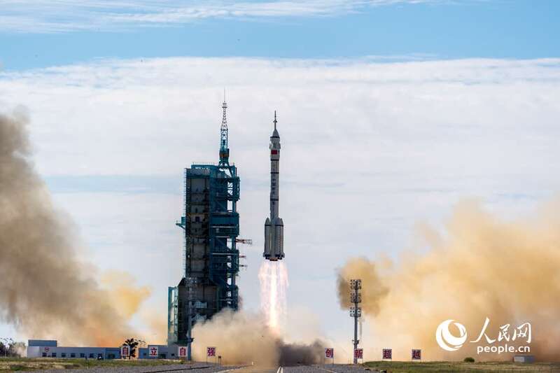 神舟十二号载人飞行任务发射现场,长征二号F遥十二运载火箭点火发射。人民网记者 翁奇羽摄
