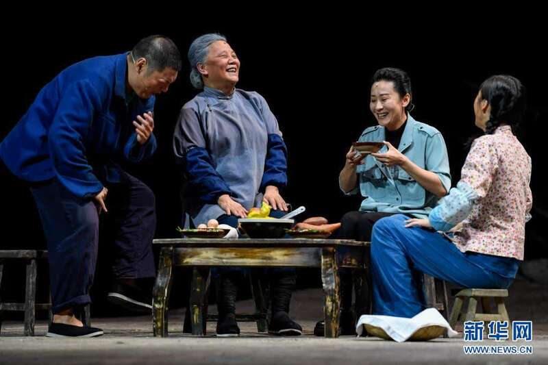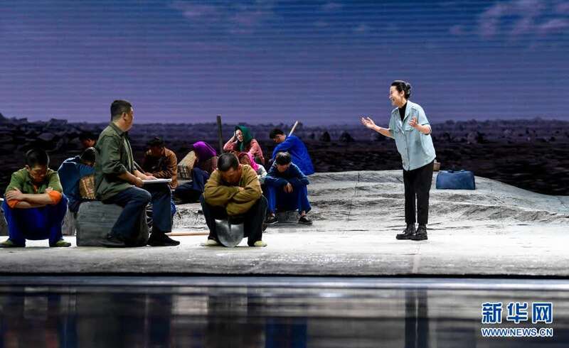 当日,由中国煤矿文工团、宁夏银川市文化旅游广电局联合出品的大型原创话剧《情系贺兰》在银川剧院上演。《情系贺兰》是一部反映闽宁脱贫攻坚的原创话剧,取材于西海固群众搬迁到闽宁镇、福建援建宁夏过程中发生的真实事例,展现出扶贫干部忘我付出、西海固人民勇于开拓、携手将“干沙滩变成金沙滩”的感人故事。新华社记者 冯开华 摄