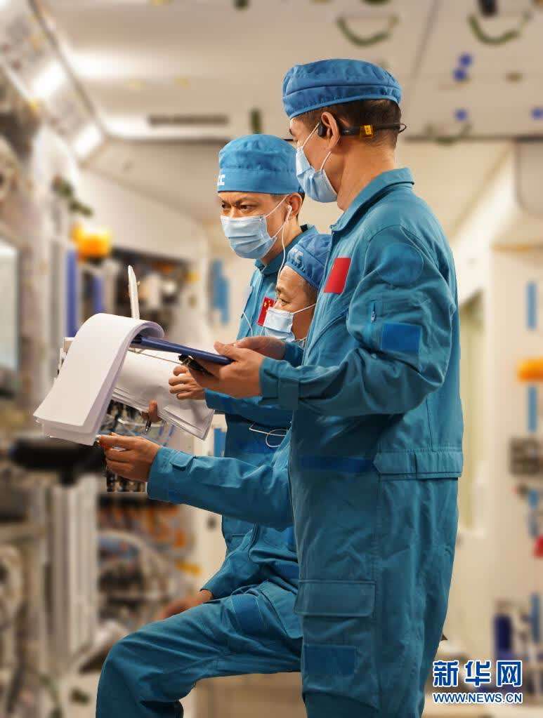 航天员聂海胜、刘伯明和汤洪波参加联试(2020年7月20日摄)。