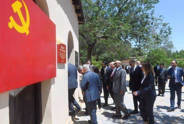 6月3日,阿拉伯国家驻华使节及阿盟驻华代表处代表等在西柏坡中国共产党七届二中全会会址参观。(王晓 摄)
