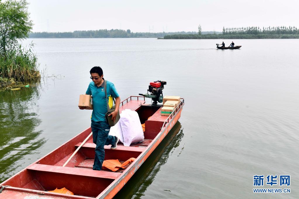 位于微山湖北端的山东省济宁市微山县南阳镇四面环水,交通不便,生活物资和邮件包裹全靠船进船出。36岁的共产党员王少朋,自2007年工作以来就一直负责着微山县邮政分公司南阳支局唯一一条水上邮路。