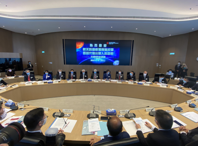 当天上午,香港理工大学举行仪式欢迎国家航天科技团队访港交流。香港特区政府官员、香港中联办相关负责人以及香港理工大学负责人等与国家航天科技团队代表进行座谈。